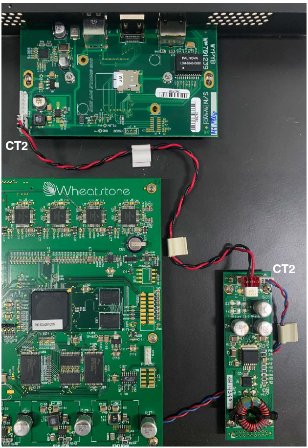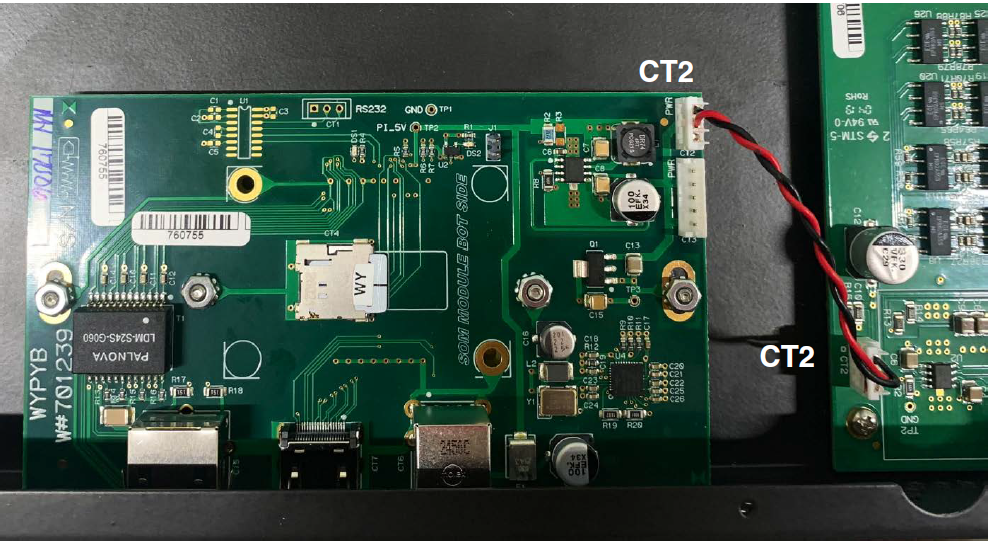 Plug in the 3-pin JST end of the included 12” cable into the CT2 header on the WYPY board, and it’s 4-pin AMP plug into the CT2 header on the 32VC5-5 board as shown in the photo.
