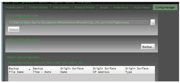 Launch LXE Setup GUI v3.x. Connect to the console. Click the Config Manager tab.